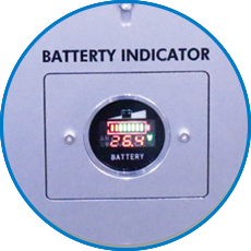 A discharge prevention circuit is installed in the high-performance battery and the remaining amount can be checked through the indicator.