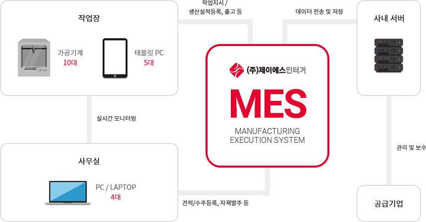 모니터링 시스템을 통한 체계적인 생산관리, 효율의 극대화를 이룸과 동시에 실시간 커뮤니케이션과